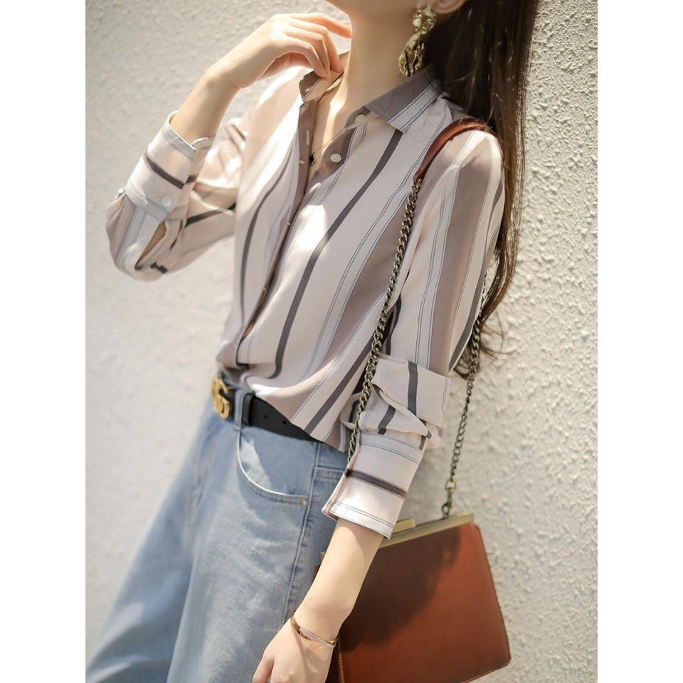 New Arrival Stripe Shirt Ready Stock Women S Shirt Baju Berjalur Kemeja Bergaris Menegak Wanita Kemeja Lengan Panjang 2020 Kemeja Saiz Besar Baru Seragam Kemeja Labuh Bawah Musim Semi Atas Shopee Malaysia