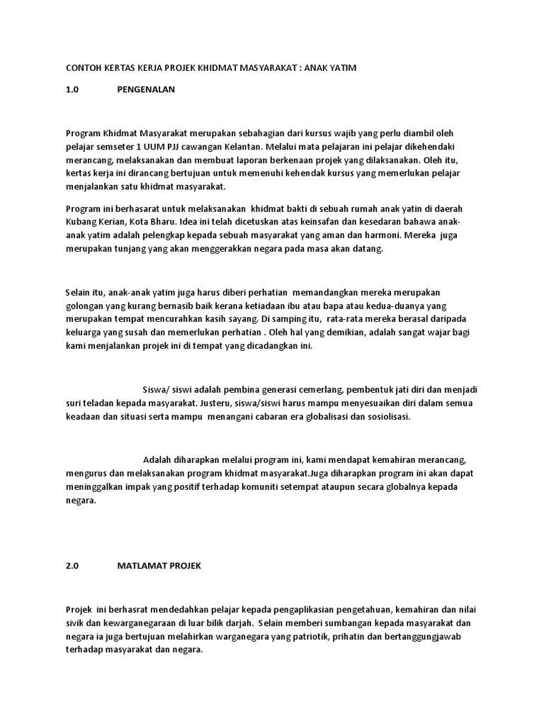 Contoh Kertas Kerja Projek Khidmat Masyarakat