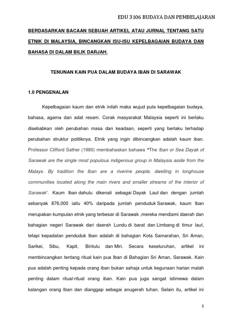 Berdasarkan Bacaan Sebuah Artikel Atau Jurnal Tentang Satu Etnik Di Malaysia