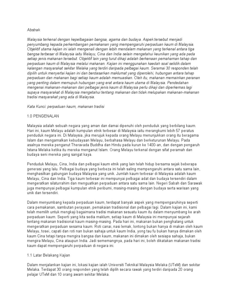 Kepelbagaian Makanan Etnik Pemangkin Perpaduan Pdf