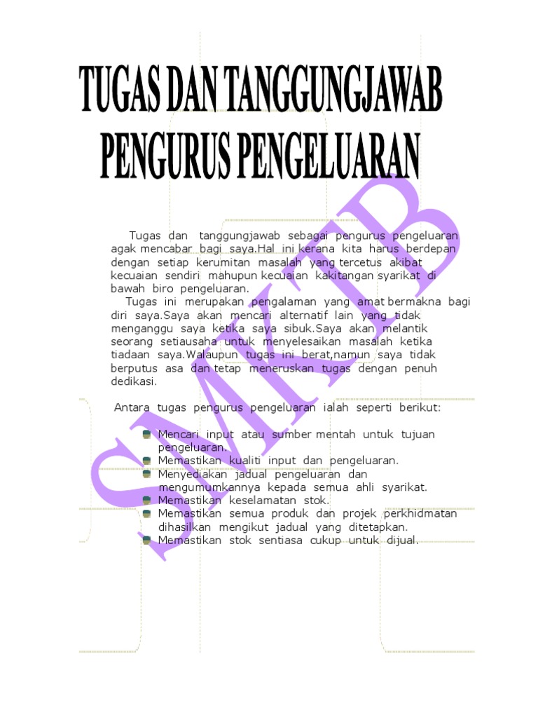 Tugas Dan Tanggungjawab Pengurus Pengeluaran