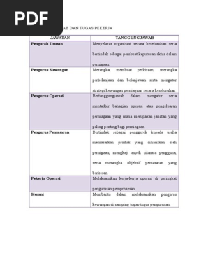 Tanggungjawab Dan Tugas Pekerja