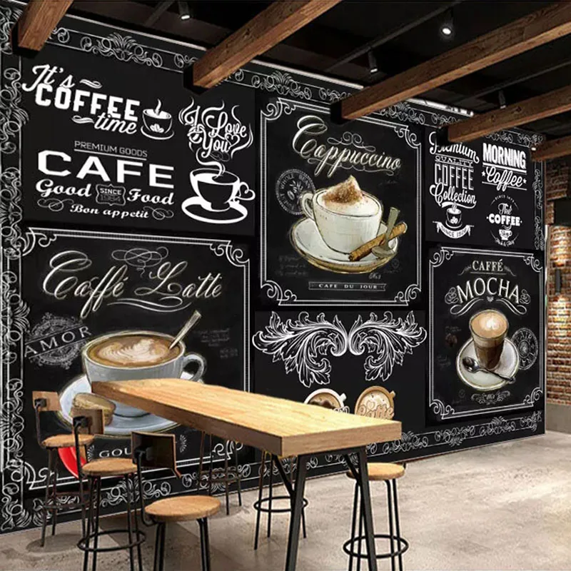Custom Any Size Mural Wallpaper Retro Hand Painted Blackboard Coffee Fresco Restaurant Cafe Background Wall Decor 3d Stickers Wallpapers Aliexpress