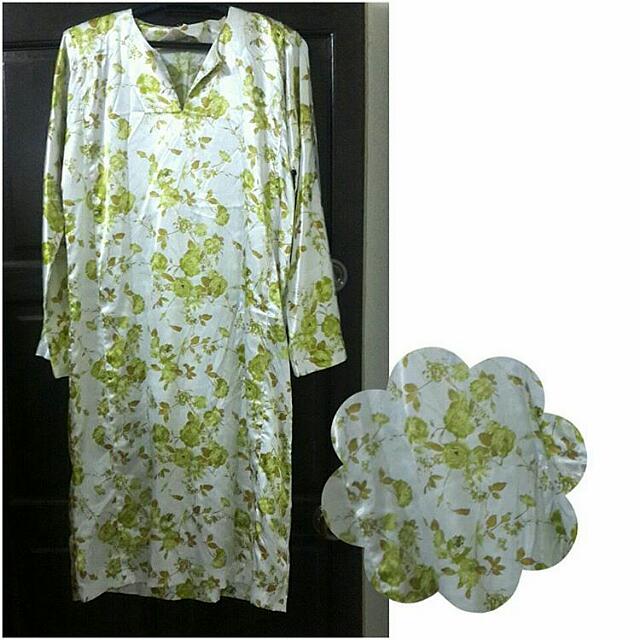 Pre Loved Baju Kurung Satin Tanah Putih Bunga Hijau Epal English Style Muslimah Fashion On Carousell