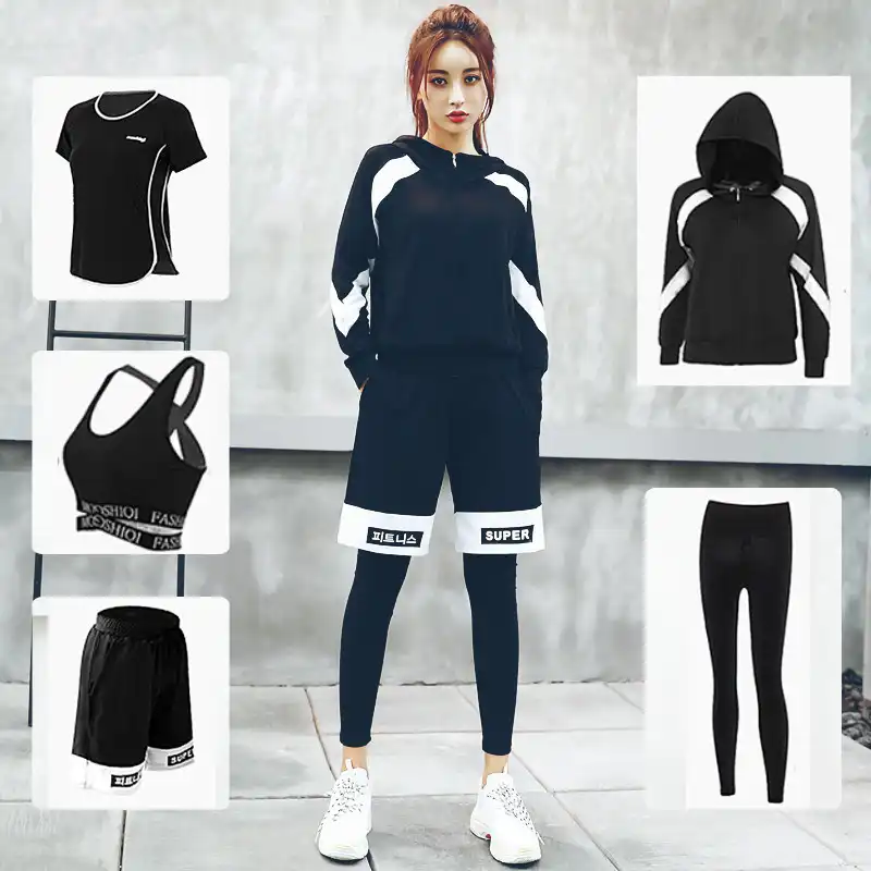 Korea Baju Olahraga 5 Potongan Yoga Set Huruf Bra T Shirt Mantel Celana Pendek Celana Pakaian Olahraga Untuk Wanita Gym Pakaian Pakaian Olahraga Aliexpress