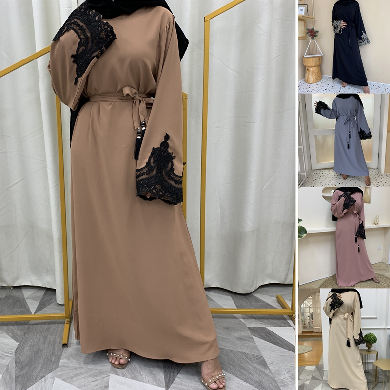 Fashion Jubah Women Dress Long Sleeve Kaftan Muslimah Baju Kurung Lace Stitching Dress Jubah Abaya Maxi Dresses Plus Size 2xl Gaun Muslim Lengan Panjang Arab Jubah Gown Dress Shopee Singapore