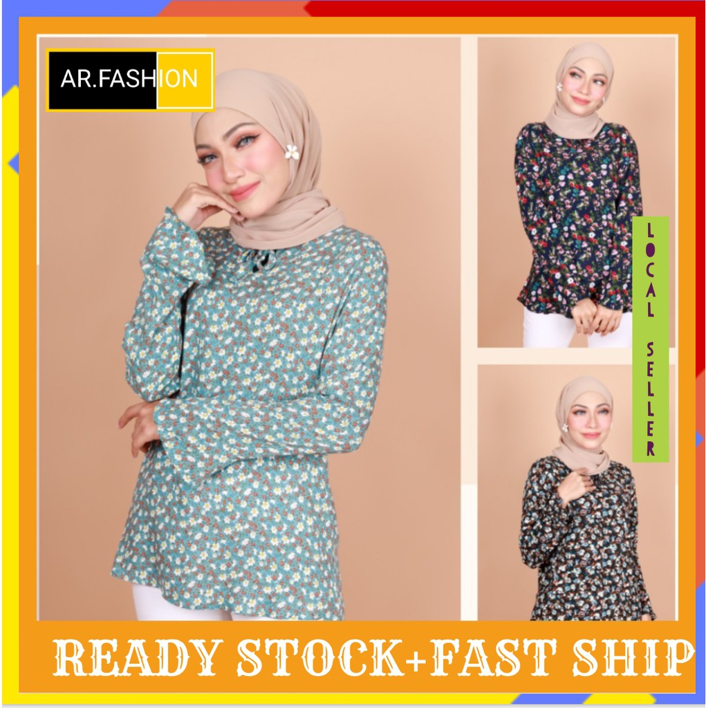 Women Blouse Ruffle Collar Floral Muslimah Top Baju Shopee Singapore