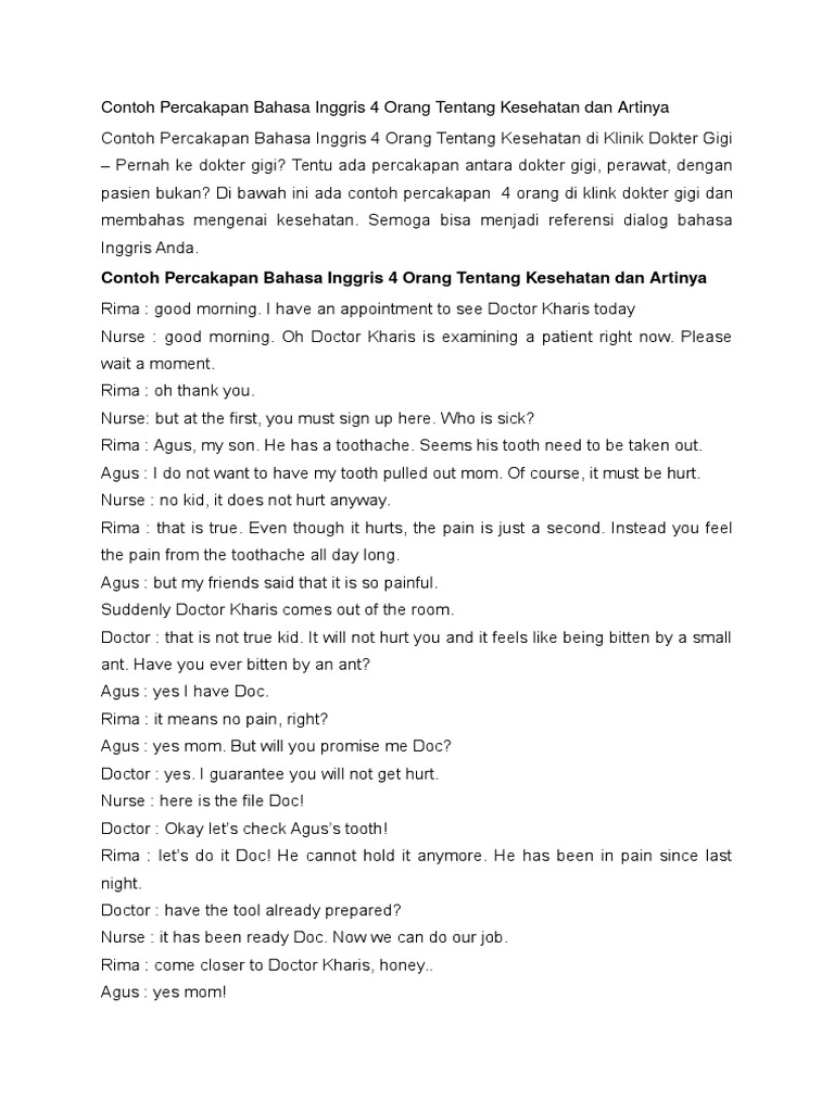 Contoh Percakapan Bahasa Inggris 4 Orang Tentang Kesehatan Dan Artinya Feeling Symptoms And Signs General