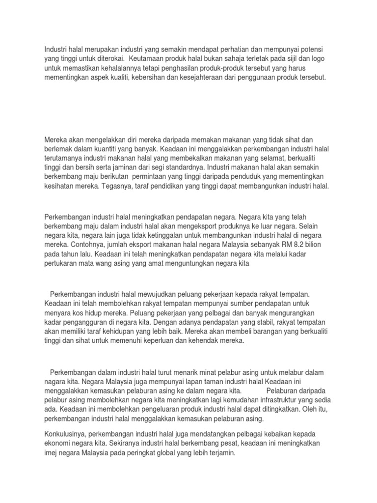 Karangan Kebaikan Penghasilan Produk Makanan Halal