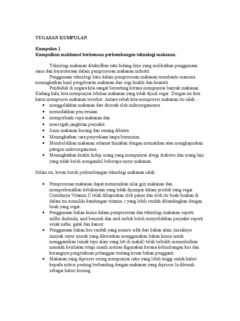 Tugasan Kumpulan Perkembangan Teknologi Makanan