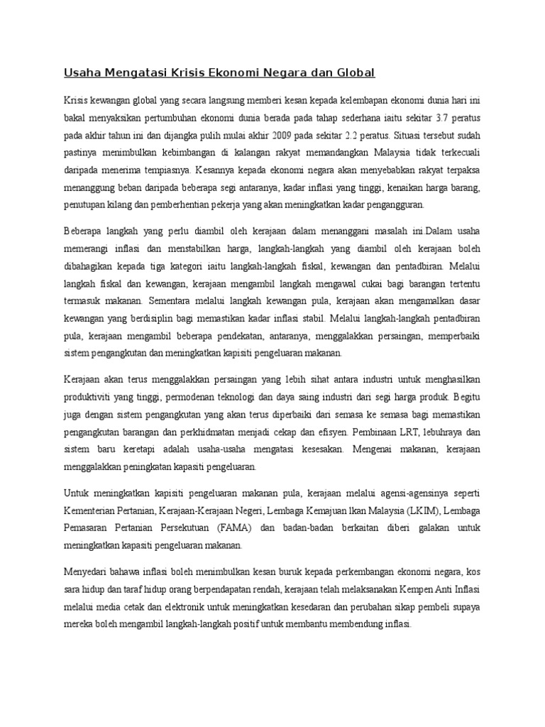 Usaha Mengatasi Krisis Ekonomi Negara Dan Global